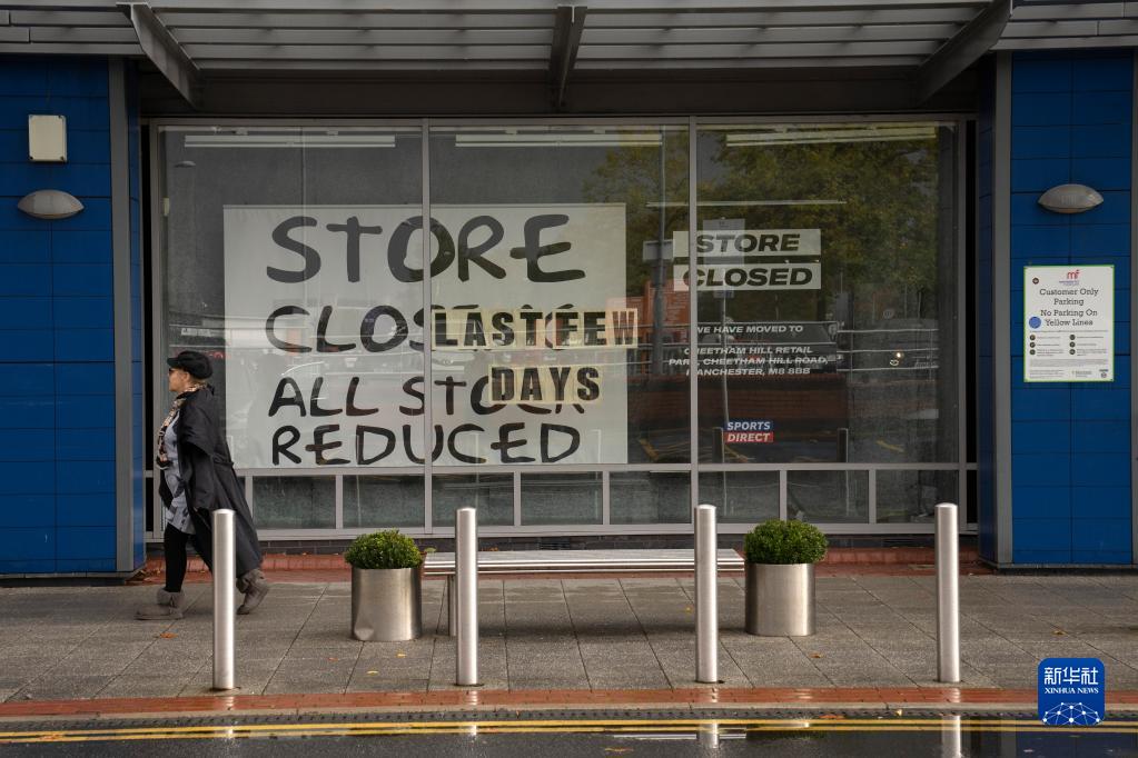 10月7日,在英國曼徹斯特,一名行人走過一家關閉的店鋪。