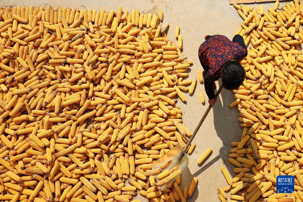 金秋十月,各地農(nóng)民搶抓農(nóng)時(shí),晾曬收獲的玉米、稻谷等,鄉(xiāng)間呈現(xiàn)出金色的豐收圖景。