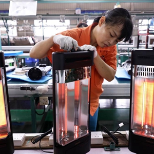廣東世聯電器員工在檢測電暖器(9月29日攝)。