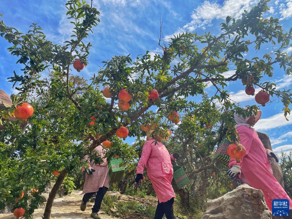 近日,山東省棗莊市嶧城區榴園鎮萬畝石榴園的石榴陸續成熟,村民們忙著采摘、交易。嶧城區有“中國石榴之鄉”美譽,全區石榴種植面積10余萬畝。