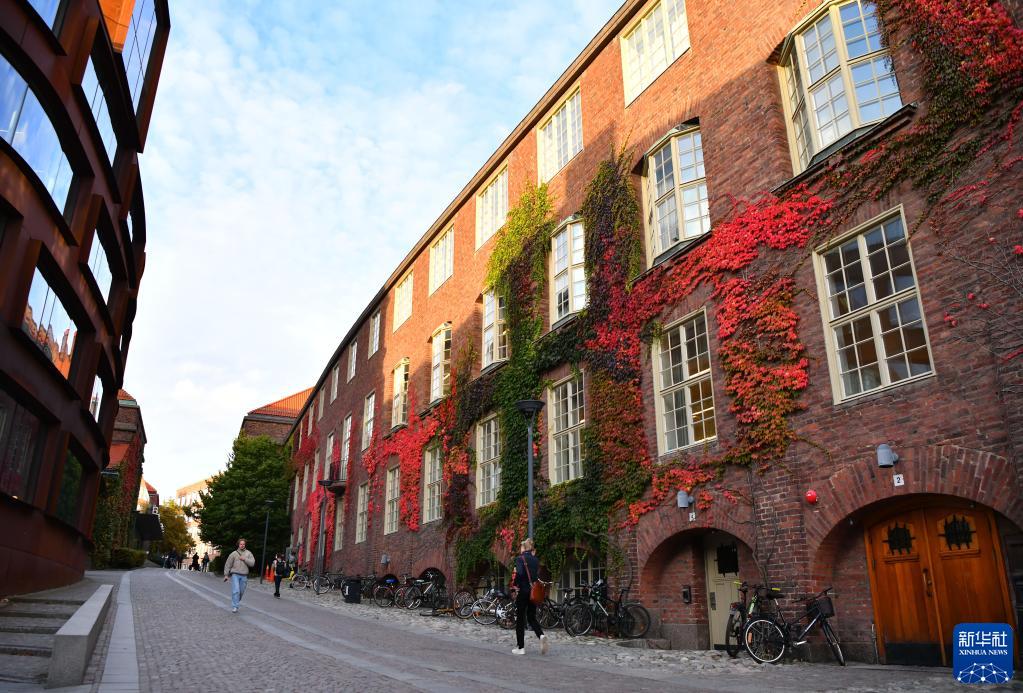 10月7日,人們行走在瑞典斯德哥爾摩的瑞典皇家理工學(xué)院內(nèi)。