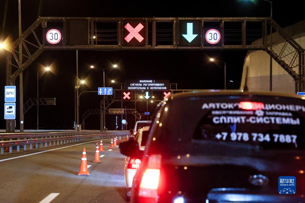 10月9日,汽車排隊(duì)通過克里米亞大橋。