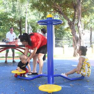 10月10日,在位于廣州市花都區的紫蘭口袋公園里,家長帶著孩子玩耍。