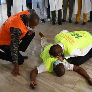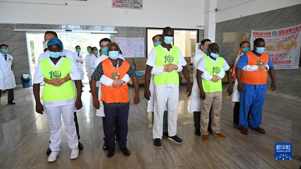 第29批中國援幾內亞醫療隊10日在幾內亞首都科納克里的中幾友好醫院開展急救培訓活動。此次活動主題為“急救白金十分鐘,國際自救互救日”,援幾醫療隊為中幾友好醫院的醫護人員開展了心肺復蘇、海姆立克急救、轉運患者、急診接診等項目的演練和培訓。