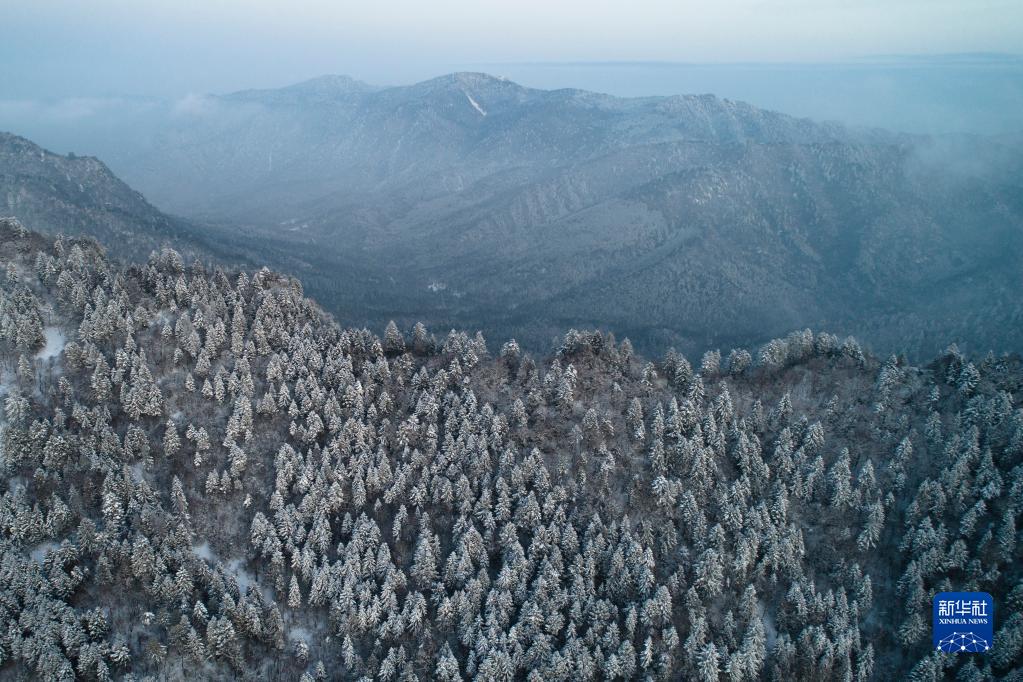 寧陜縣境內實施天保工程后的秦嶺平河梁景色(2月7日攝,無人機照片)。 新華社記者邵瑞攝