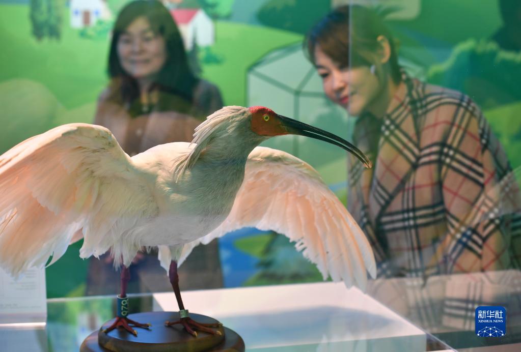 游客在陜西寧陜朱鹮野化放飛基地管理站內(nèi)參觀(10月10日攝)。 新華社記者邵瑞攝