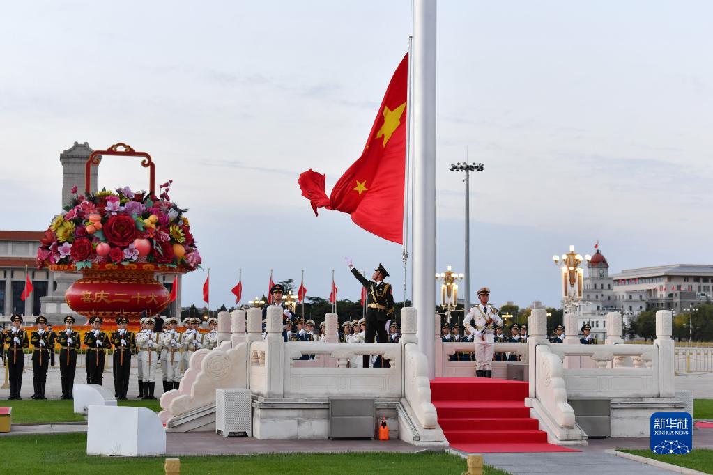 10月16日清晨,北京天安門廣場舉行升國旗儀式。