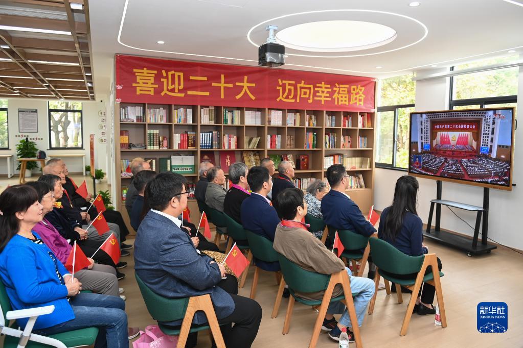 10月16日,浙江省杭州市西湖區(qū)翠苑街道翠苑一區(qū)社區(qū)的黨員觀看中國共產黨第二十次全國代表大會開幕會。