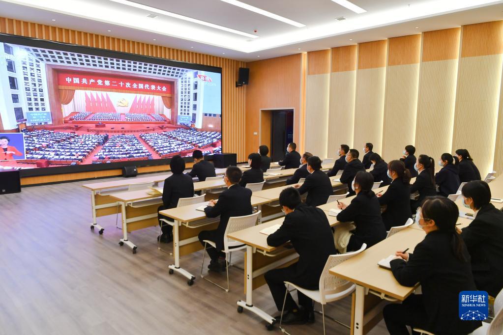 10月16日,延安革命紀念館黨員干部收看中國共產黨第二十次全國代表大會開幕會。