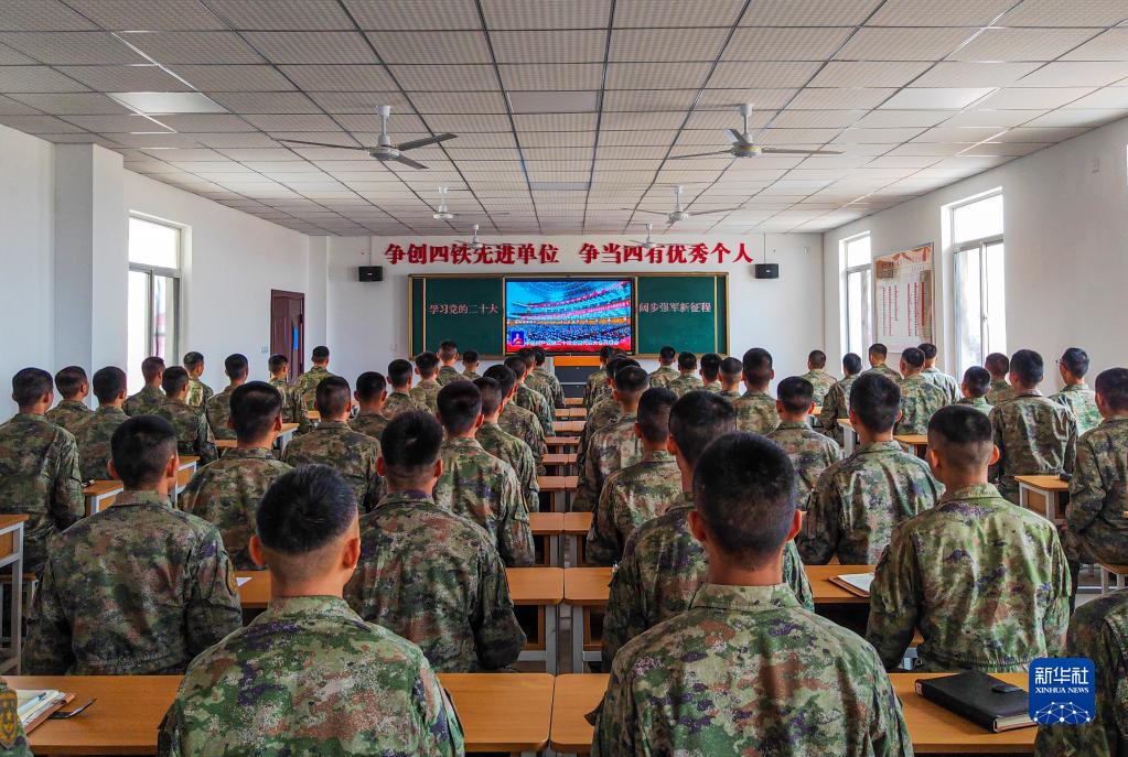 10月16日,東部戰區陸軍第72集團軍某旅裝甲步兵連官兵收看中國共產黨第二十次全國代表大會開幕會。