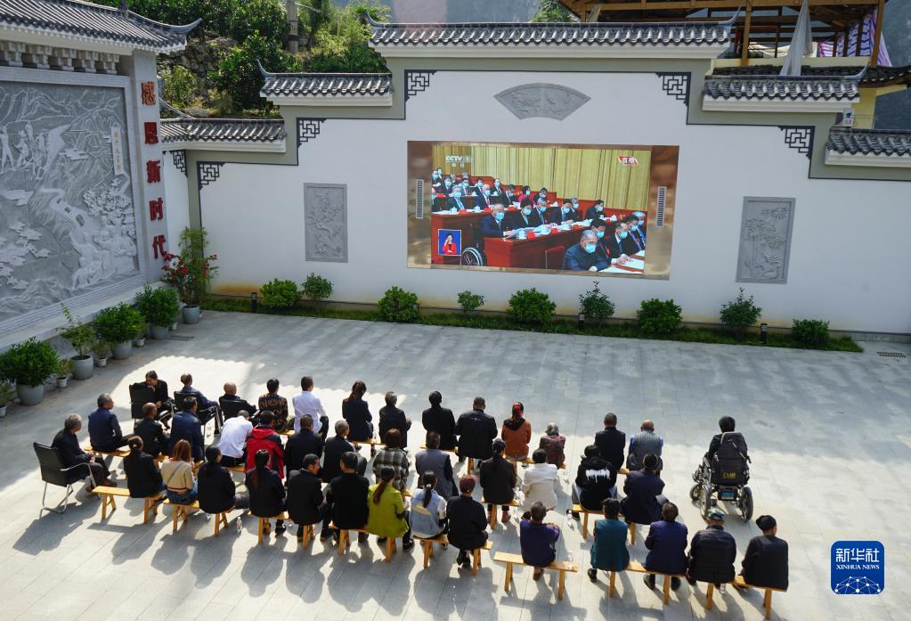 10月16日,重慶市巫山縣竹賢鄉下莊村村民收看中國共產黨第二十次全國代表大會開幕會。