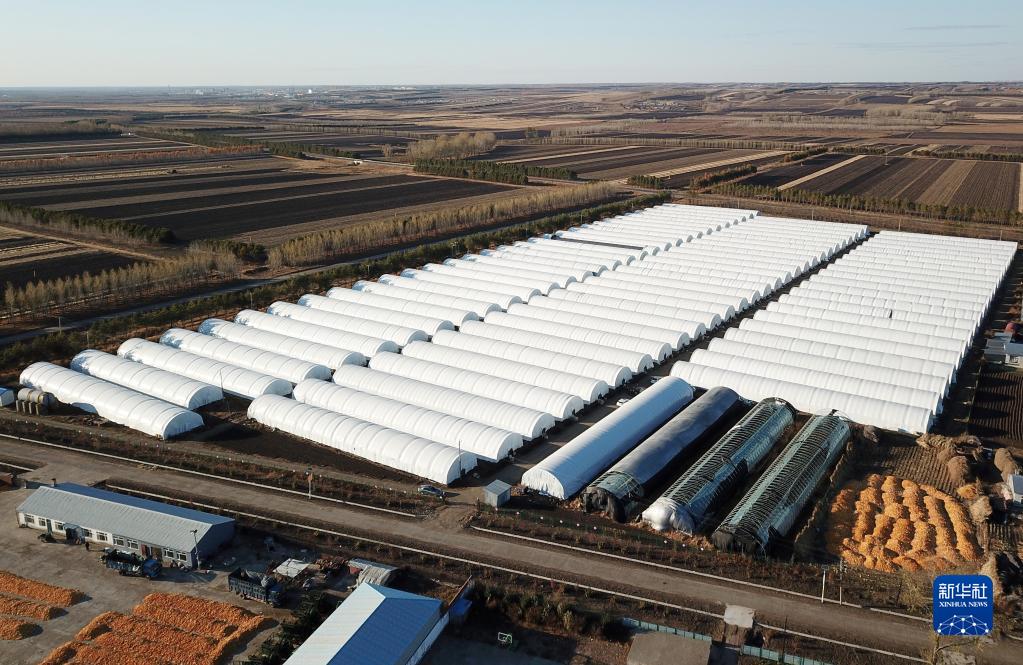 這是10月17日拍攝的黑龍江省拜泉縣興國(guó)鄉(xiāng)食用菌產(chǎn)業(yè)園區(qū)的大棚(無(wú)人機(jī)照片)。