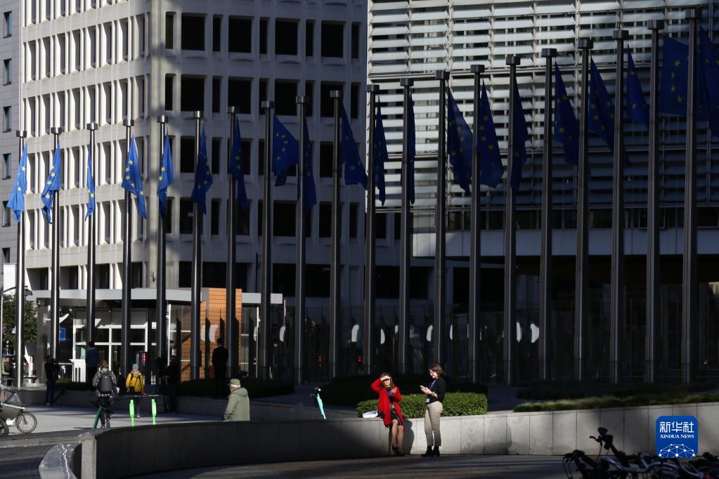 10月18日,人們在位于比利時布魯塞爾的歐盟委員會總部大廈外交談。