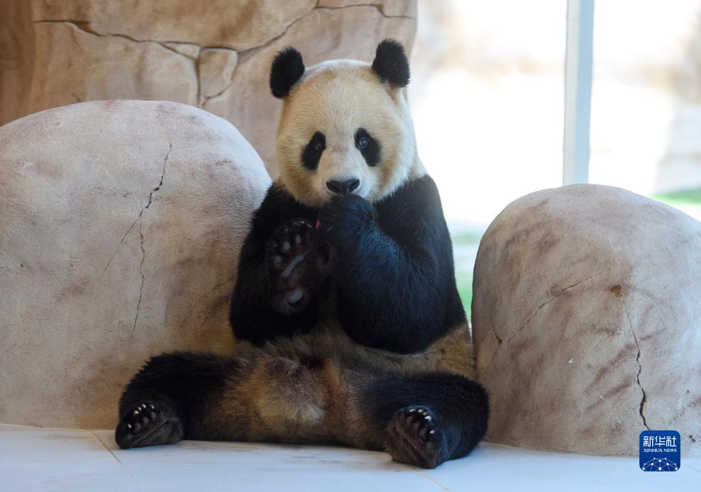 這是10月19日在卡塔爾首都多哈的豪爾熊貓館拍攝的大熊貓。新華社發(尼庫攝)