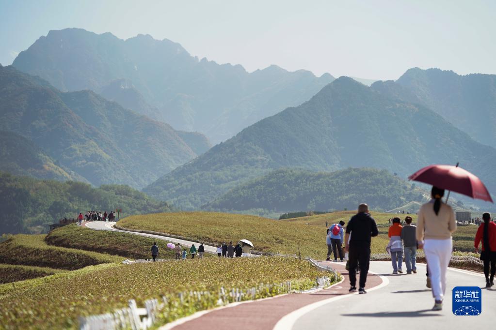 游人在秦嶺北麓的陜西藍田縣九間房鎮(zhèn)峪口村內(nèi)游玩(10月16日攝)。