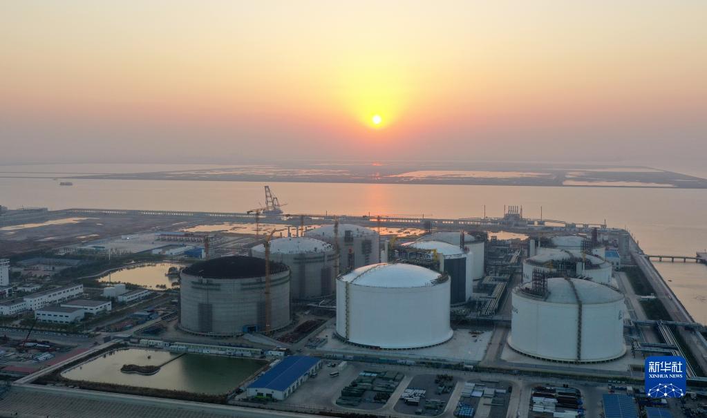 10月19日拍攝的建設中的中石化天津液化天然氣(LNG)接收站(無人機照片)。