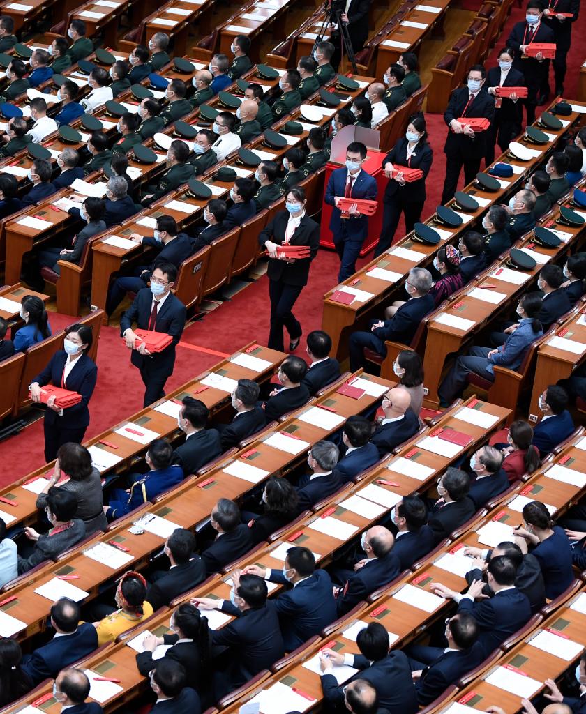 10月22日,中國共產黨第二十次全國代表大會閉幕會在北京人民大會堂舉行。這是工作人員在發選票。