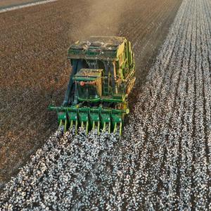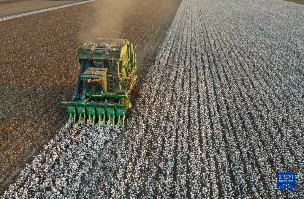 秋日,我國最大棉花生產基地新疆進入棉花大規模采收季,大型機械忙碌在天山南北的棉田之中。
