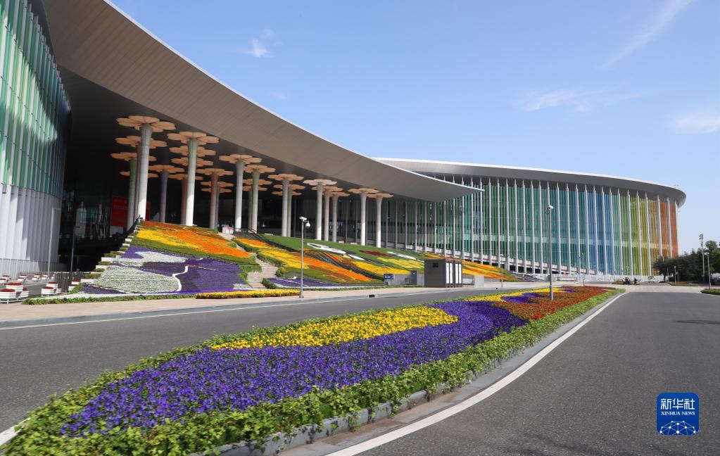 近日,位于上海青浦的國家會展中心(上海)場館外部進博會主題裝飾工程進入收尾階段,包括南廣場在內(nèi)的四個出入口都已裝飾一新,迎接即將開幕的第五屆中國國際進口博覽會。