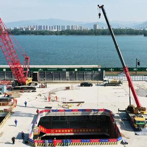 當(dāng)日,直徑15.76米的“富春號”盾構(gòu)機抵達接收工作井,由中鐵十四局承建、位于浙江省杭州市富陽區(qū)的秦望通道工程過江隧道順利穿越富春江,實現(xiàn)貫通。