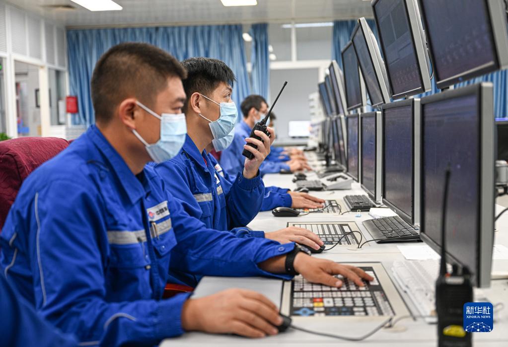 工作人員在海南東方臨港產業園海洋石油富島有限公司中控室作業(10月20日攝)。