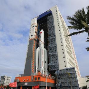 10月25日,夢(mèng)天實(shí)驗(yàn)艙與長(zhǎng)征五號(hào)B遙四運(yùn)載火箭組合體在進(jìn)行垂直轉(zhuǎn)運(yùn)前準(zhǔn)備。