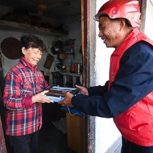 10月25日,昌化鎮居家養老服務中心的送餐員為高齡老人送餐上門。