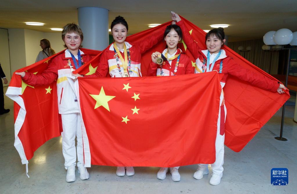 10月24日,在芬蘭赫爾辛基,中國選手獲獎后合影。