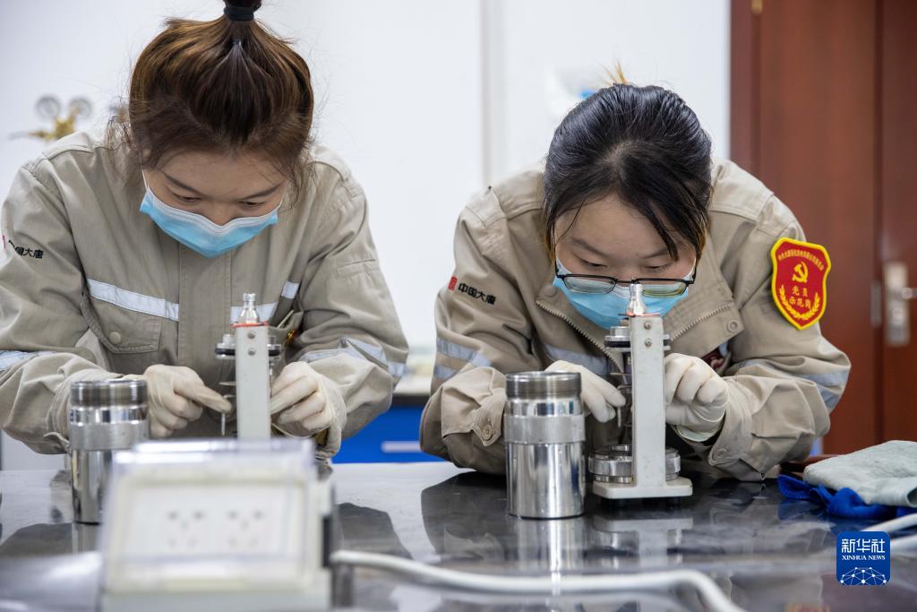 10月24日,在大唐綏化熱電有限公司發(fā)電部煤化驗(yàn)班實(shí)驗(yàn)室內(nèi),于瀾(右)和同事在進(jìn)行煤質(zhì)實(shí)驗(yàn)。