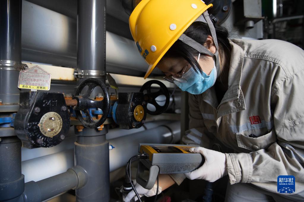 10月24日,在大唐綏化熱電有限公司供熱車間內(nèi),化驗(yàn)員王蕾在進(jìn)行水質(zhì)檢測(cè)。