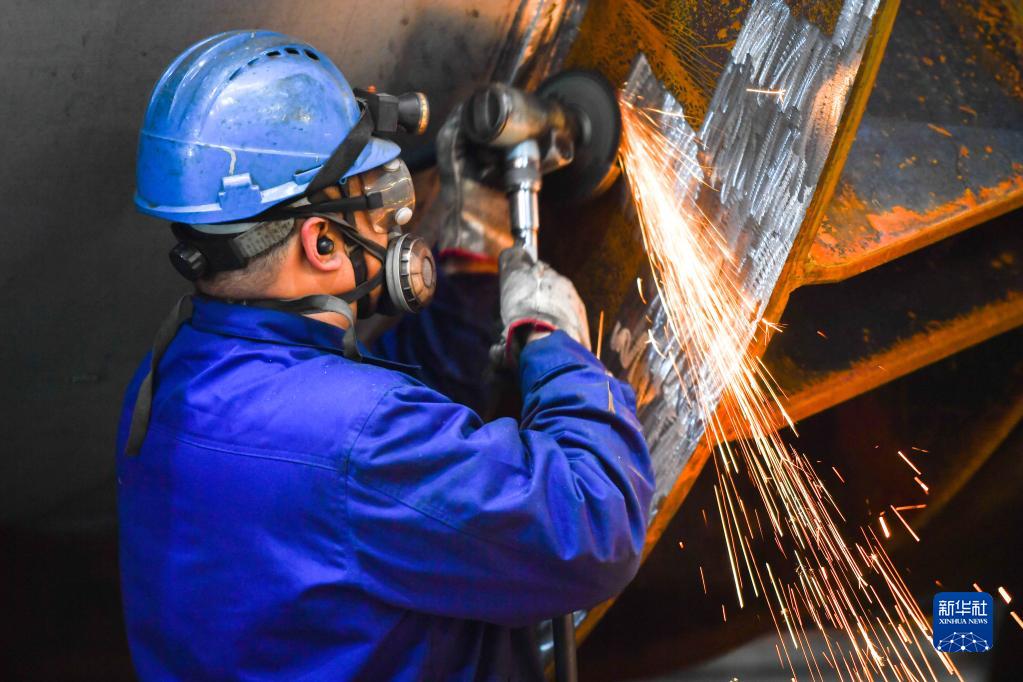 在哈電集團哈爾濱鍋爐廠有限責任公司的生產車間,工人在生產作業(10月24日攝)。