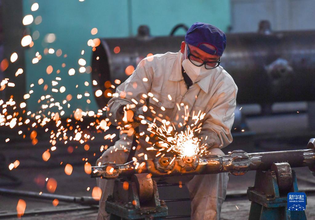 在哈電集團(tuán)哈爾濱鍋爐廠有限責(zé)任公司的生產(chǎn)車(chē)間,工人在生產(chǎn)作業(yè)(10月24日攝)。