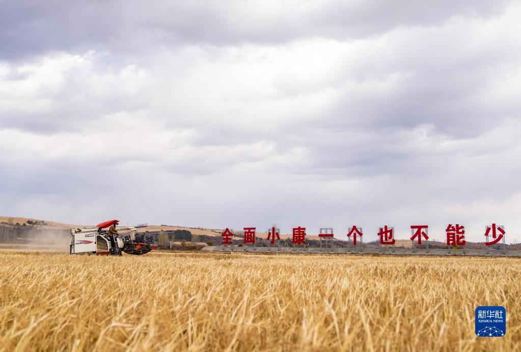 10月23日,在吉林省延邊朝鮮族自治州和龍市光東村,農(nóng)民駕駛農(nóng)機(jī)收割水稻。