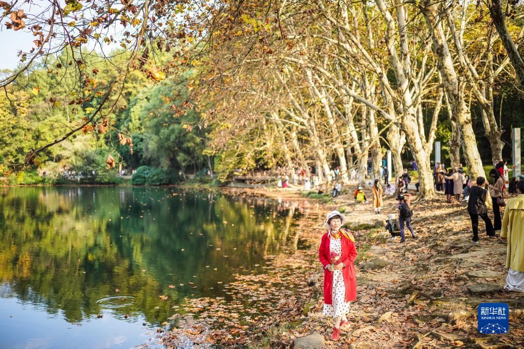 近日,貴州省貴陽市花溪國家城市濕地公園黃金大道秋意盎然,風景如畫,吸引市民前來觀賞游玩。