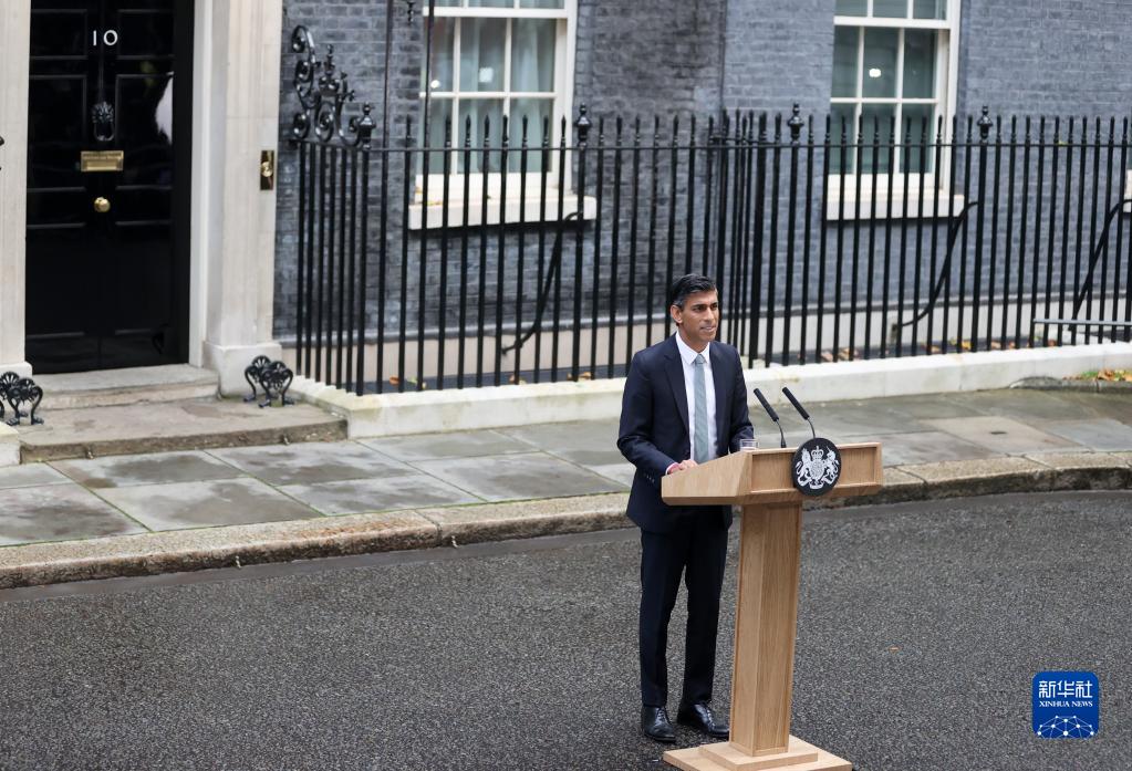 10月25日,里希·蘇納克在英國倫敦唐寧街10號首相府前發表講話。