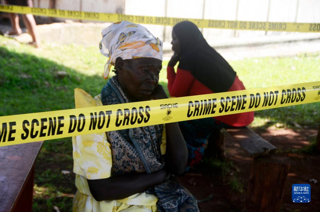 10月25日,在烏干達中部穆科諾地區(qū)一所盲人學校,一名婦女在被封鎖的火災(zāi)現(xiàn)場哭泣。