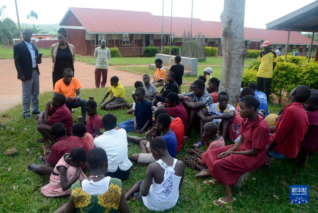 10月25日,在烏干達中部穆科諾地區一所盲人學校,火災后一些視障兒童聚集在學校的大院里。