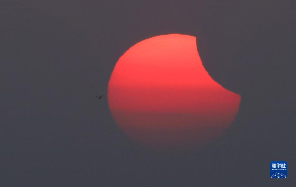 當日,一場日偏食景觀現身天宇,歐洲、非洲東北部、亞洲西部等地區可見。
