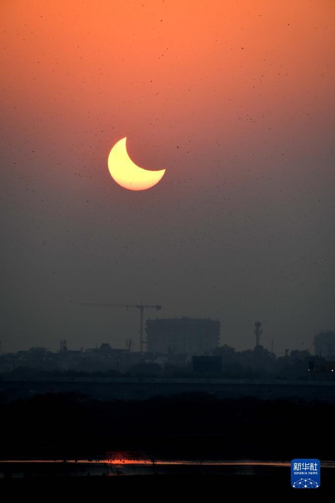 當日,一場日偏食景觀現身天宇,歐洲、非洲東北部、亞洲西部等地區可見。