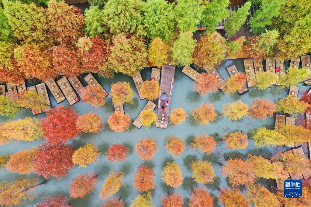 這是10月26日拍攝的泗洪洪澤湖濕地景區秋色(無人機照片)。