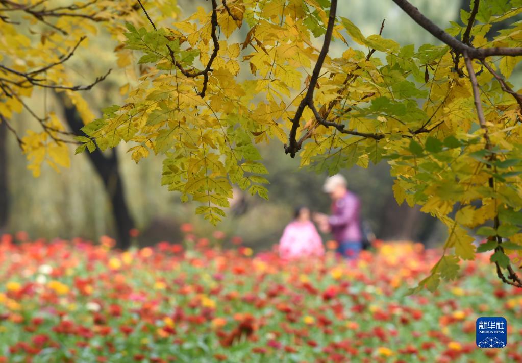 深秋時節,北京圓明園內的銀杏、楓樹、黃櫨等彩葉樹種五彩繽紛,構成別具特色的金秋畫卷。
