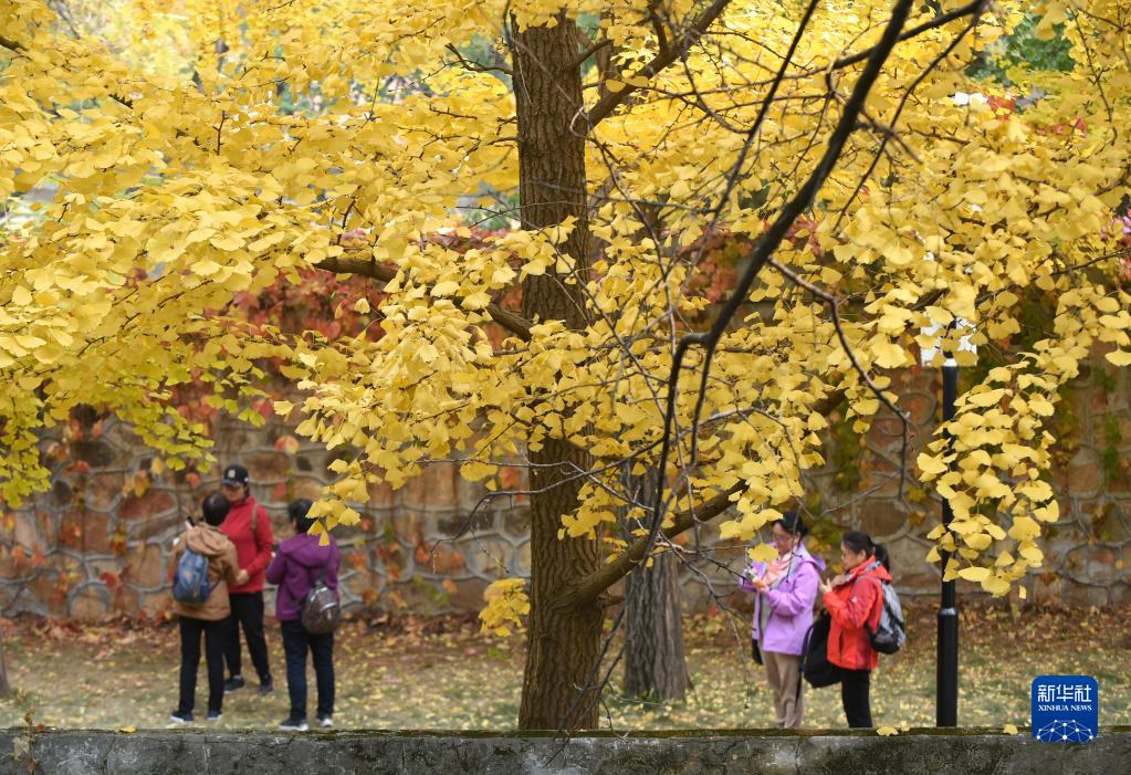 10月26日,游客在圓明園內(nèi)的銀杏大道拍照。