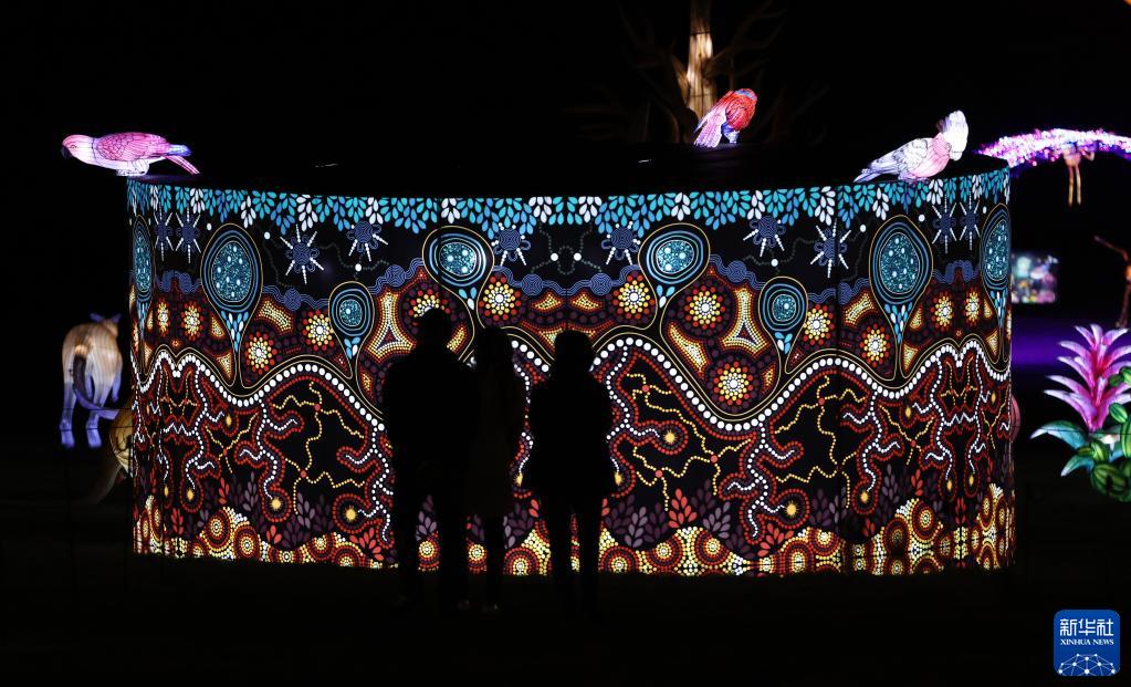 10月26日,參觀者在法國圖瓦里動物園燈展媒體預(yù)展上觀看彩燈。