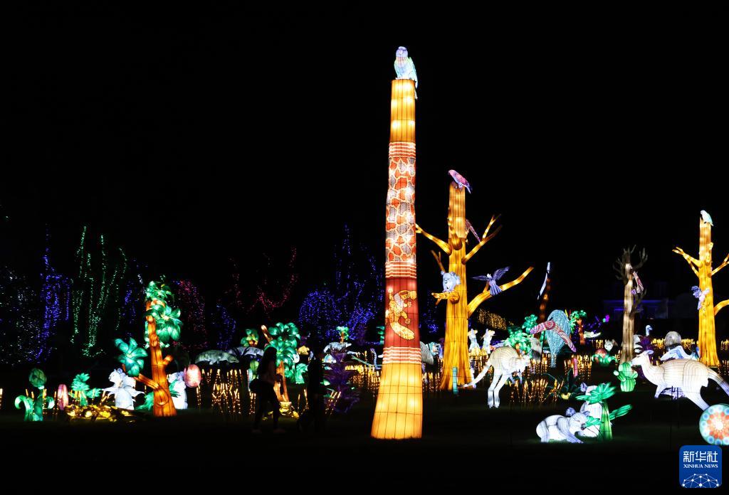 10月26日,參觀者在法國(guó)圖瓦里動(dòng)物園燈展媒體預(yù)展上觀看彩燈。