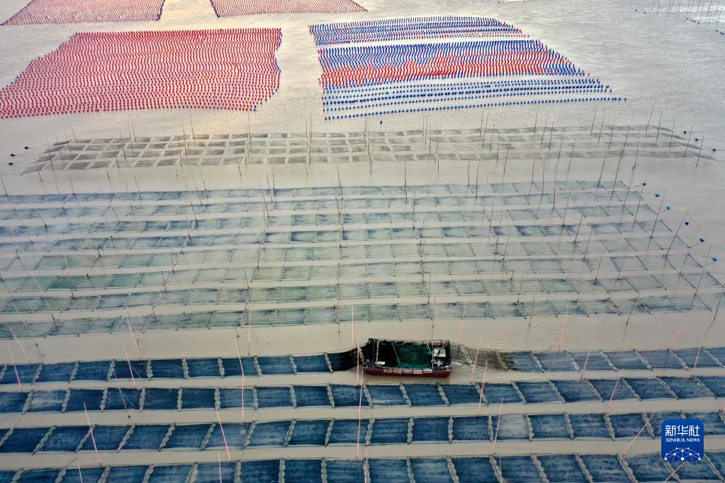 金秋時節,福建省海洋養殖大縣霞浦縣海域上一派繁忙的秋收景象。每天的早晨和傍晚是漁民出海勞作、歸港返家的繁忙時段,漁船在廣闊的海洋牧場里穿行游弋,收獲紫菜、生蠔等水產品,描繪出一幅幅美麗的大海漁耕圖。