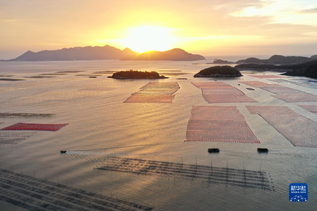 金秋時(shí)節(jié),福建省海洋養(yǎng)殖大縣霞浦縣海域上一派繁忙的秋收景象。每天的早晨和傍晚是漁民出海勞作、歸港返家的繁忙時(shí)段,漁船在廣闊的海洋牧場里穿行游弋,收獲紫菜、生蠔等水產(chǎn)品,描繪出一幅幅美麗的大海漁耕圖。