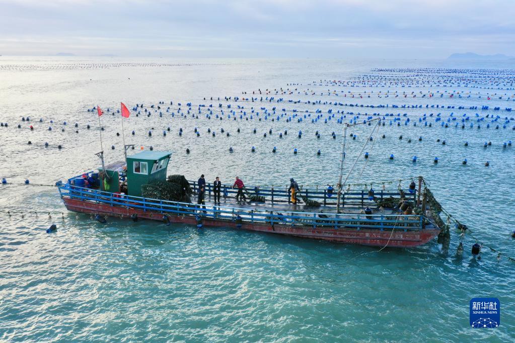 金秋時節,福建省海洋養殖大縣霞浦縣海域上一派繁忙的秋收景象。每天的早晨和傍晚是漁民出海勞作、歸港返家的繁忙時段,漁船在廣闊的海洋牧場里穿行游弋,收獲紫菜、生蠔等水產品,描繪出一幅幅美麗的大海漁耕圖。