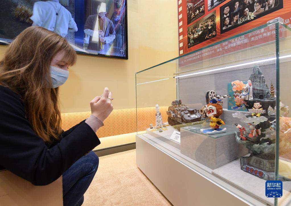 10月27日,外國(guó)嘉賓在參觀“奮進(jìn)新時(shí)代”主題成就展時(shí)拍攝展柜內(nèi)的卡通玩具。新華社記者 李賀 攝