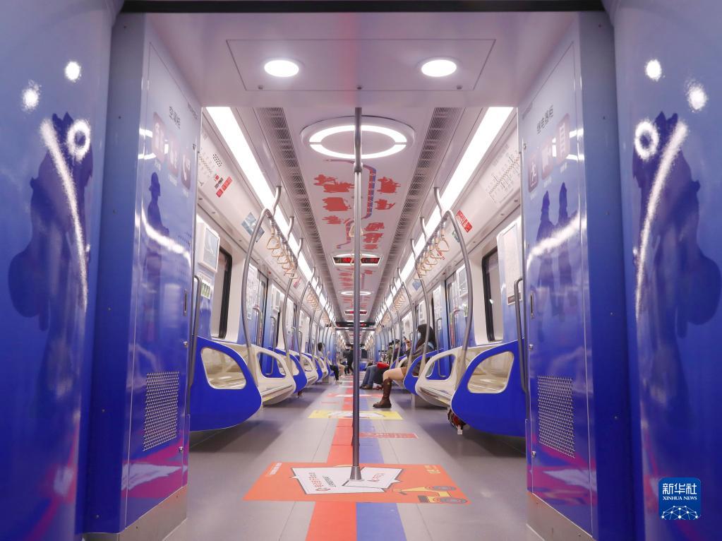 10月28日拍攝的運(yùn)行中的上海消防119號(hào)地鐵主題列車內(nèi)景。