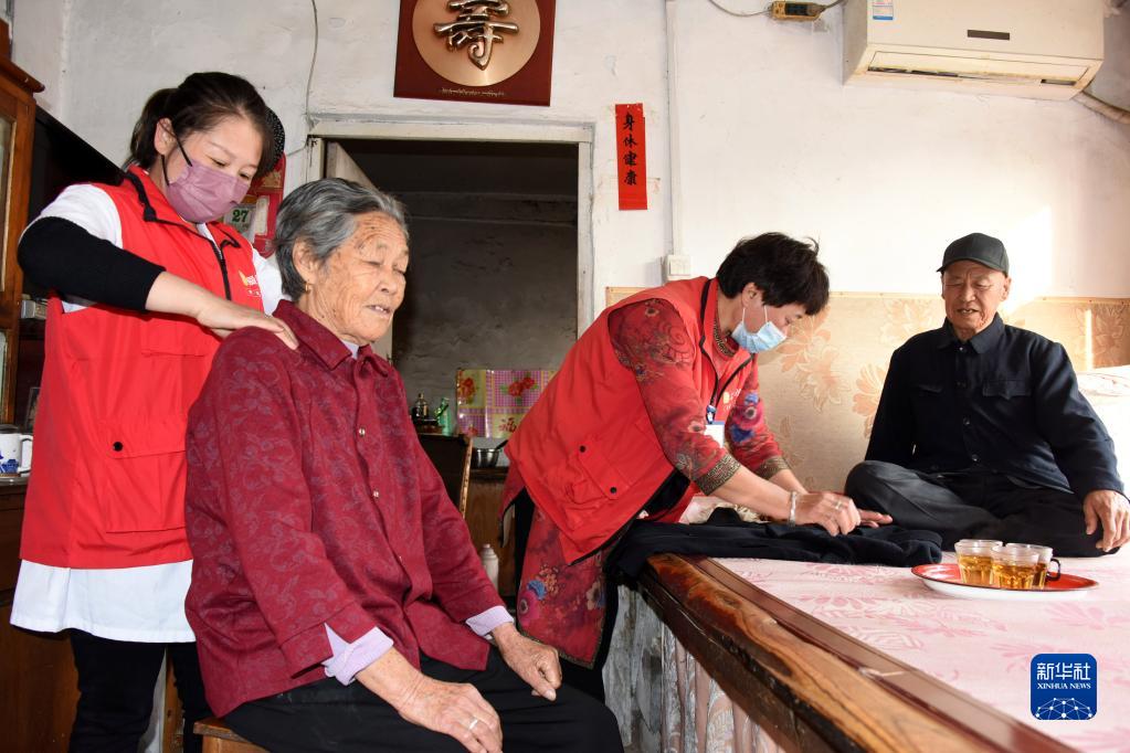 10月27日,在青島西海岸新區泊里鎮蟠龍李村,養老服務中心工作人員上門為老人提供服務。